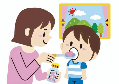 お薬を飲んだ後の後味、これが意外と曲者です。持続することもあります。お薬を飲んだ後にもう1度お水を飲ませるなど口の中をきれいにするとよいでしょう。いずれ始まるイヤイヤ期に備える意味でも、服薬による嫌な記憶が少しでも残らないように「お口直しにもうひとくち」を忘れずに。